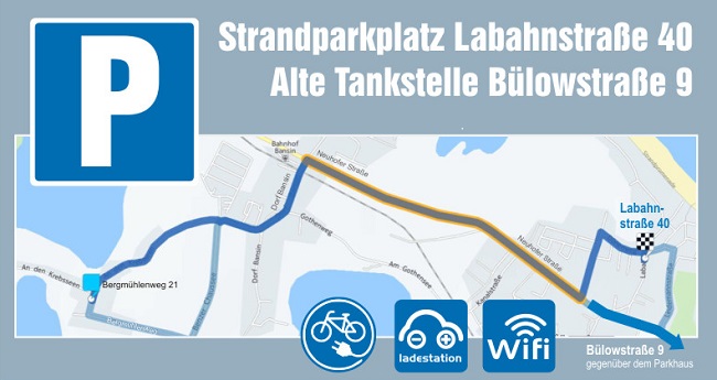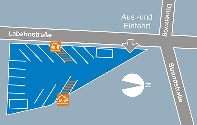 Ihr Parkplatz für PKW liegt nur ca. 200m vom Strand und vom Ortskern entfernt Sie haben bei uns WIFI, Stromanschluss zum Nachladen ihres Elektrofahrrades und eine Ladestation für Elektroautos.
